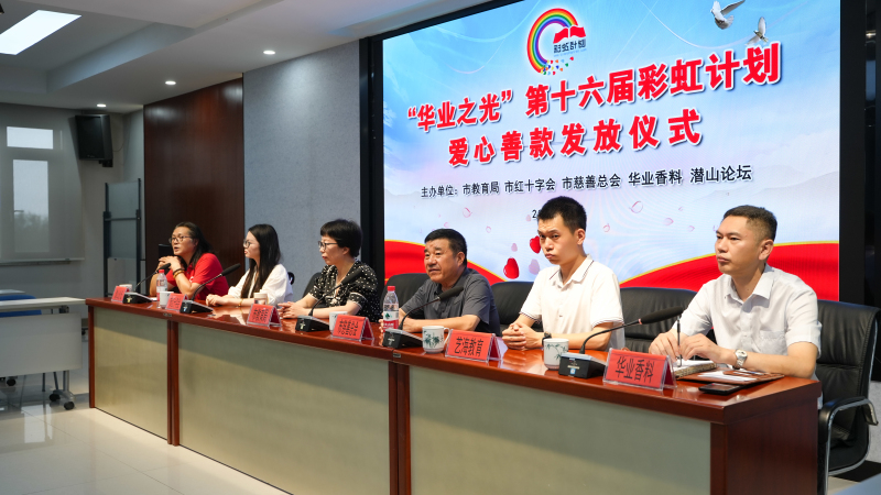 8月30日,承载着希望与温暖的“华业之光”第十六届彩虹计划助学金发放仪式,在华业香料会议室隆重举行。本次仪式由潜山市教育局潜山市慈善总会、潜山市红十字会、潜山论坛、艺海教育及华业香料联合举办,相关单位代表悉数出席并发表了饱含深情的讲话,共同勉励受助学子珍惜韶华、积极向上、勤学上进,以优异的成绩回报家乡和社会。