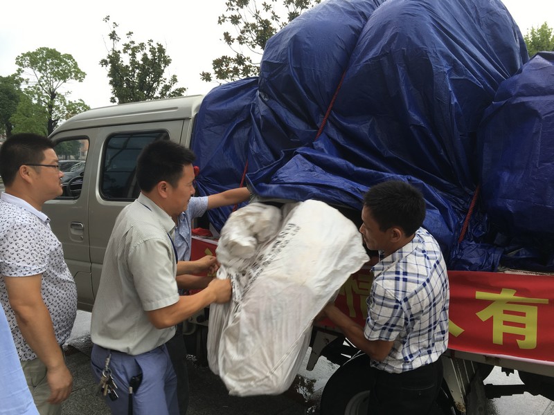 洪水无情人有情,安徽华业香料股份有限公司于7月4日奔赴城区各安置点,为安置群众送去急需的棉被、毛毯、拖鞋、雨衣等生活必需品。入夜,又冒雨向潜山四中安置点送去大米2000斤,食用油350斤,帮助安置群众渡过难关!