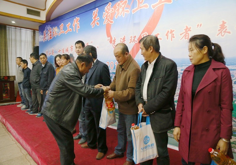 会议对王桃虹、储桂南等11名“十佳城市美容师”和王从先、汪全承等20名“先进环卫工作者”予以表彰。会上还举行了爱心捐赠仪式,安徽华业香料股份有限公司作为唯一的捐赠单位,十分重视这次活动,提前一个月就与行政执法局联系对接,讨论活动细节安排,制定活动实施方案,精心挑选适用的慰问品。这次捐赠活动面向在城的所有环卫工人,共安排380份,包括大米、食用油与爱心包裹,总价值近5万元。