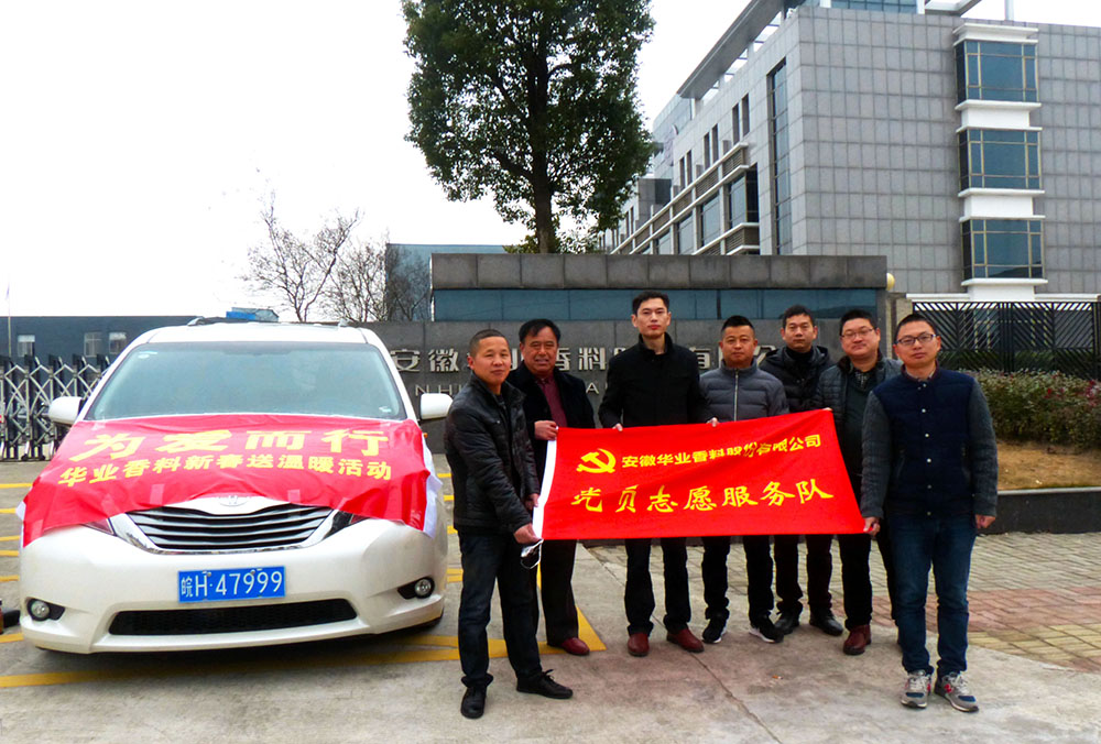 元月19日,冬日的暖阳,犹如全体华业人的爱心。一辆“为爱而行——华业香料新春送温暖活动”专车奔驰在山村的道路上,公司党员志愿服务队的志愿者们带着公司领导的嘱托,分组行动。每到一处,华业人就把大米、食用油和慰问金送到贫困户手中,让他们感受到社会的温暖和关爱。人们纷纷为华业公司回报社会的善举和浓厚的桑梓之情而点赞!