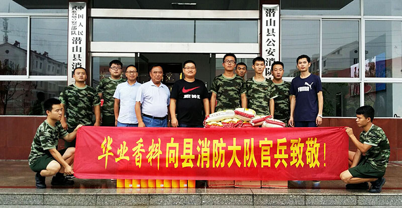 8月1日上午,安徽华业香料股份有限公司一行来到县消防大队,代表公司向驻潜消防官兵表达了崇高敬意和节日问候,并送上了慰问品,共庆建军90周年。