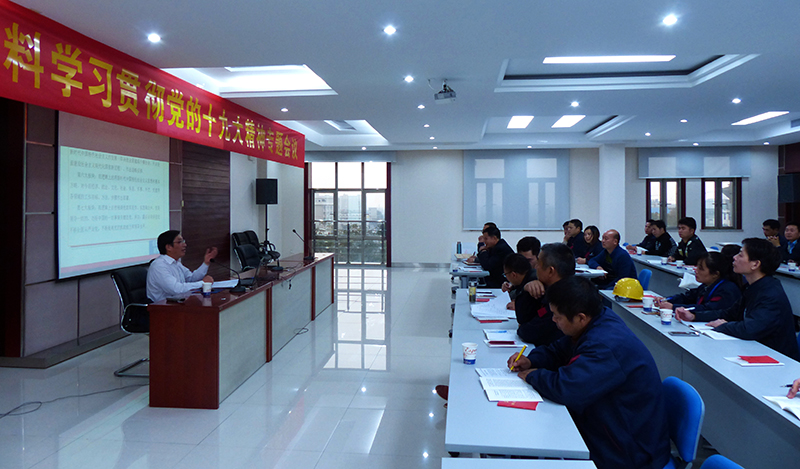 党总支书记汪民富传达了《中共中央关于认真学习宣传贯彻党的十九大精神的决定》,并要求大家充分认识学习宣传贯彻党的十九大精神的重大意义,要把学习贯彻党的十九大报告精神作为当前和今后一个时期的首要政治任务,在学懂弄通做实上下力气,全面准确领会其内涵实质,要在全体党员内掀起大学习、大培训、大落实,结合公司生产经营和各自工作,实现新作为,取得新业绩。