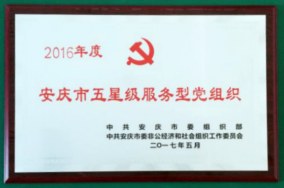 近日,公司党总支连获“第四批省级双强六好非公企业党组织”和“2016年度安庆市五星级服务型党组织”荣誉称号。