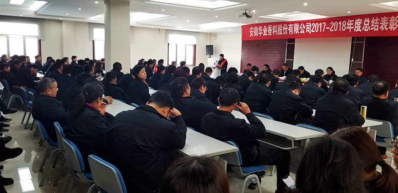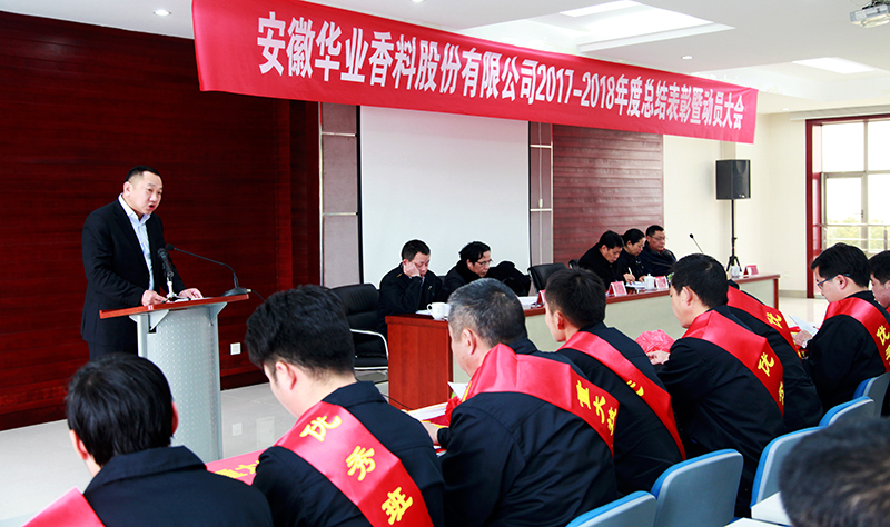 会上,华文亮董事长发表了重要讲话,他充分肯定了公司2017年经营管理所取得的良好业绩,并向全体员工表示感谢!对新一年工作,董事长提出了三点要求:一要善于把控三“势”。即明势不惑,乘势而上,因势而为。企业要深刻认识十九大报告中“贯彻新发展理念,建设现代化经济体系”,支持民营企业发展和实体经济这一大势,保持战略定力,不断加强学习,以持续创新为抓手,专注内酯香料这个细分市场做精做细。同时华业作为外向型企业还必须抢抓经济全球化深度融合这一机遇,要以全球化视野深入开展国际业务合作,要提高站位,向高处攀、与强者比、和快的赛,倒逼自己最大限度发挥优势和潜能。
