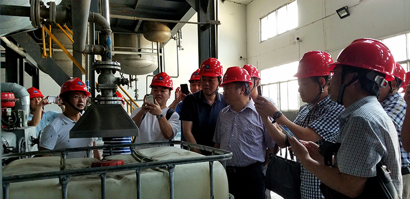 考察团实地考察了华业车间生产,废气收集处理和污水处理系统及处理效果。特别对我司通过有机溶剂吸收和自动碱液喷淋处理废气印象深刻。
