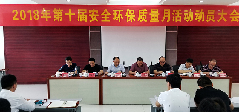 6月8日,公司2018年第十届安全环保质量月活动动员大会在四楼会议室隆重召开,以“生命至上、安全发展、环保优先、品质提升”为主题的第十届安全环保质量活动月拉开帷幕。县安监局、环保局、市监局、工会及县开发区安全办等领导莅临会议,公司总经理徐基平、副总经理储艳新、吴旭、王天义、汪民富、徐霞云及各部室、车间负责人和一线员工共计100余人参加了会议,会议由副总经理汪民富主持。