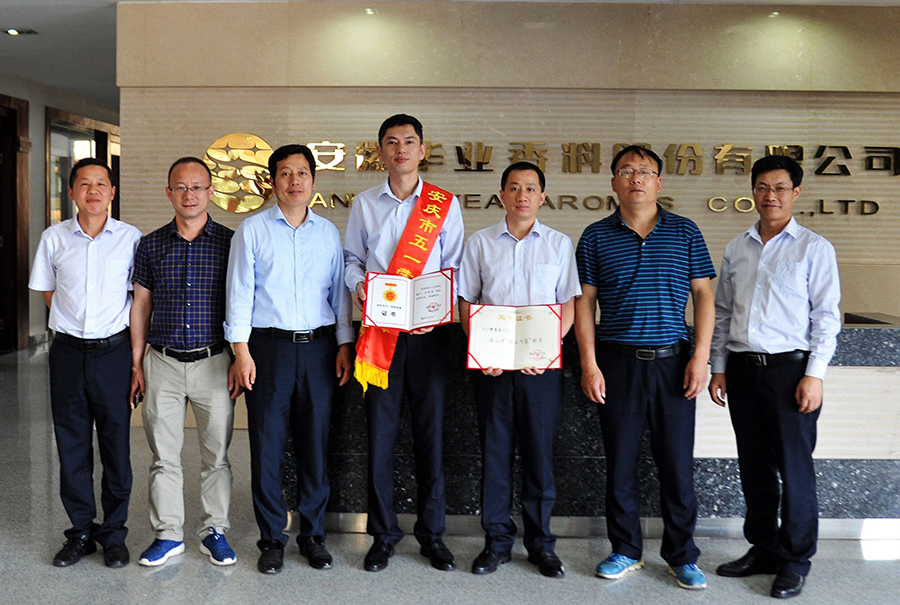 安徽华业香料股份有限公司荣获“安徽省劳动竞赛先进集体”,总支书记、副总经理汪民富荣获“安庆市五一劳动奖章”,首席品香师徐基龙荣获潜山市“能工巧匠“称号。