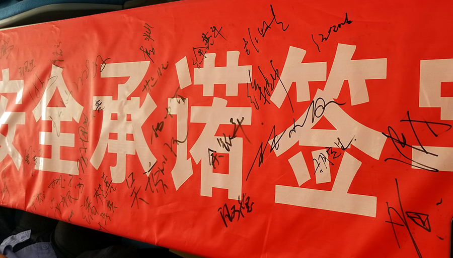 会上,徐基平总经理与各分管副总签订了《安全环保质量责任承诺书》。会前,还进行了以“防风险、除隐患、遏事故、提品质”为主题的“安全华业人”签名活动。