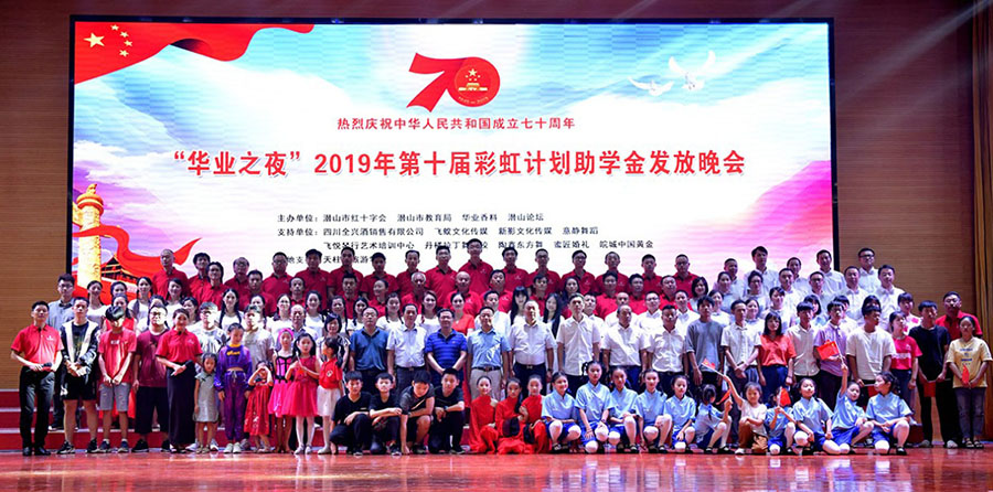 8月23日晚,由华业香料、潜山市红十字会、潜山市教育局、潜山论坛联合主办的“华业之夜”2019年第十届“彩虹计划”助学金发放仪式在天柱山旅游学校大礼堂隆重举行。