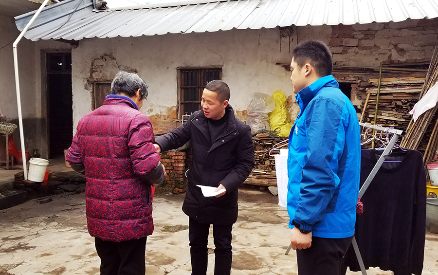 2月1日,华业党总支书记汪民富、副书记吴旭、工会主席叶见俭等一行冒着寒风细雨来到槎水镇槎水村,在村会议室举行了集中慰问仪式,汪民富代表华业公司向父老乡亲表达新年祝福和良好祝愿!大家将慰问金和春联一一送到每位困难群众的手上。此后慰问小组又用两天时间,到梅城镇、经开区、舒苑居委会等村居上门走访贫困家庭,人们纷纷为华业公司回报社会善举和浓厚桑梓之情点赞!