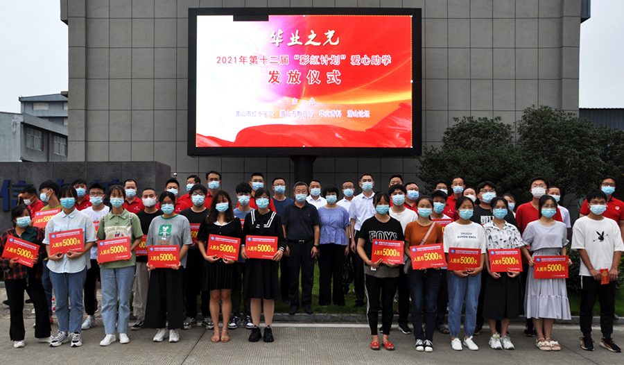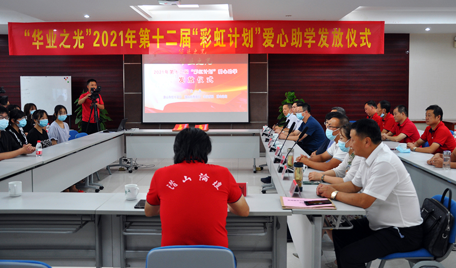 8月27日下午,“华业之光”第十二届“彩虹计划”助学金发放仪式在华业公司举行?;疃苫迪懔稀⑶鄙绞泻焓只?、潜山市教育局、潜山论坛联合主办。市政协副主席张曾、储爱星,市红十字会、市教育局相关领导出席仪式,华业副总汪民富、工会主席叶见俭参加了活动。