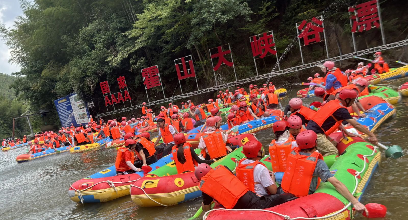 第二天,六万情峡景区的红色演出,将大别山儿女的抗日情景在我们眼前徐徐展开。逼真的特效与生动的表演,让大家仿佛穿越回那个烽火连天的年代,深刻感受到革命先烈们的英勇与无畏。下午的霍山大峡谷漂流则是一场关于勇气与欢乐的盛宴,大家在水中尽情嬉戏,不仅释放了工作中的压力,更在欢笑中加深了彼此间的感情。