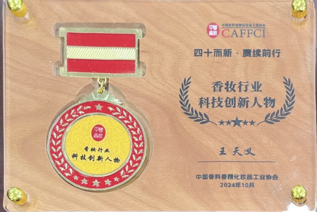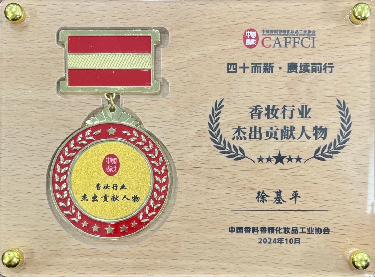 颁奖盛典,星光璀璨。凭借在推动行业发展进步方面的重要贡献,华业香料荣获“香妆行业领军企业”,总经理徐基平获评“香妆行业杰出贡献人物”,副总经理王天义获“香妆行业科技创新人物”。