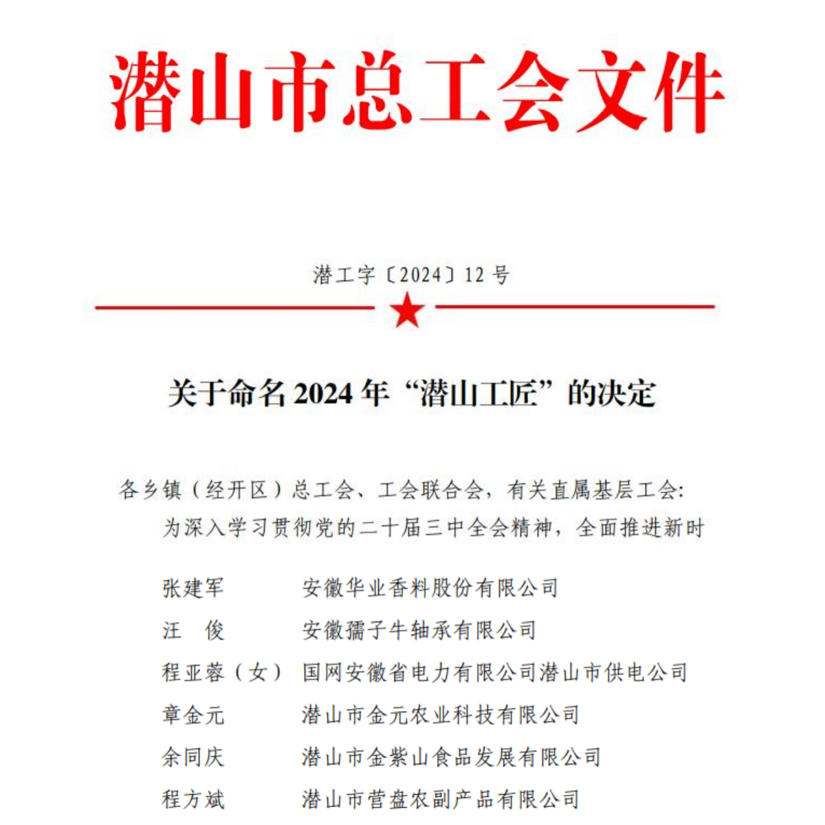 日前,潜山市总工会举办“潜山工匠”命名仪式,华业香料研发中心中级工程师张建军凭借优秀的创新能力和技术创新成果,荣获“潜山工匠”荣誉称号。