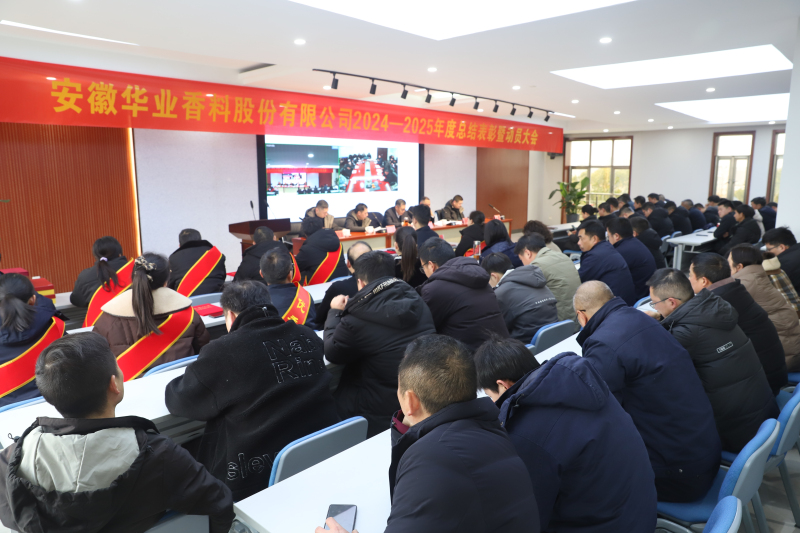 2月6日,华业香料2024-2025年度总结表彰暨动员大会在潜山总部举行。公司在潜董事会成员出席会议,未当班的一线员工及全体行政人员参加会议,合肥公司通过视频连线参加会议。会议由公司董事、党总支书记汪民富主持。